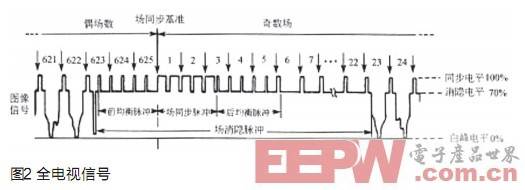 CMOS摄像头正常供电后,便可输出原始图像的信号波形,它是PAL制式的模拟信号,包含行同步、行消隐、场同步、场消隐等信号如图2所示。但该形式的信号并不能被CPU直接使用,需要加入视频解码芯片如SAA7111,它的功能是将摄像头输出的模拟信号转化为数字信号,同时产生各种同步信号,CPU利用此同步信号将图像的数字信号存储在一个外部FIFO芯片AL422中,这便构成了基本的路径检测模块,如图3所示。