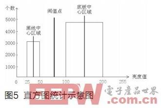 在对赛道环境的分析中,我们可以发现黑线部分的亮度是相对比较固定的,其波动的范围非常小,小于20(亮度值最大为255),而白色底板的亮度值变化相对较大一些,但仍能保证其与黑线的亮度值有较大的梯度。因此,可以采用直方图统计法来对其阀值进行自动设定,具体方法如下。