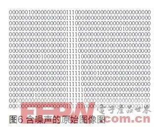 在车体运动过程中,图像经过二值化后并不会出现太大的噪声,只是在局部出现了一小部分的椒盐噪声,其典型图像如图6所示。在该系统设计中,图像处理的目的是准确地找到黑线的中心位置。由于图像中噪声的面积非常小,并且一般出现在离黑线较远的地方,处理的方法也比较多,可采用中心坐标递推法。