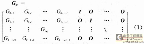 DTMB标准中的LDPC码属于准循环LDPC码,其生成矩阵具有如式(1)所示的格式。