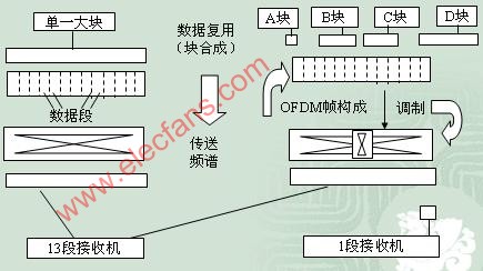 一个块层内包含的OFDM段的数目并无限定,可多可少(<13),而部分接收时总是接收中央的一段,即只接收一个物理通道(6MHz)内TS流的一部分。