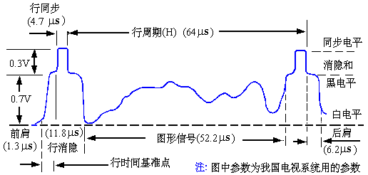 图07-03-6 一个行周期的黑白全电视信号