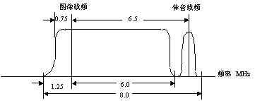 电视信号在通过无线广播发射或有线传输时,对图像信号采用残留边带调幅、对伴音信号采用调频的发送方式。每一路电视节目所占的频带为8MHz(图07-03-9,以我国电视标准为参数)。