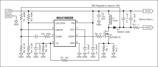 步骤6:R1和R2可选。它们用于调整+VLED至29V。这在输出端出现意外开路时非常有用。如果没有上述元件的分压,输出电压有可能上升,导致器件损坏。