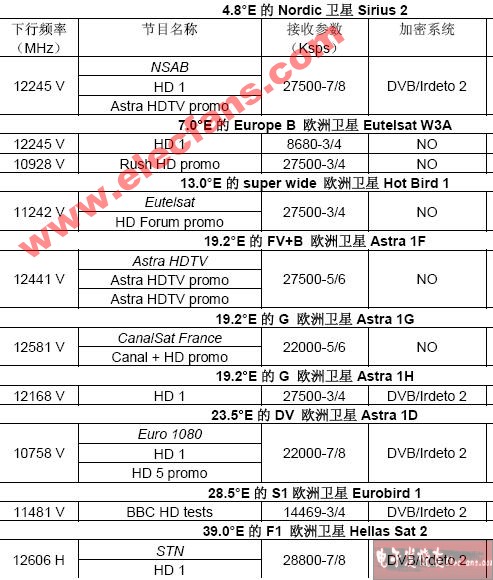欧洲地区可以收到的卫星高清数字电视参考节目表