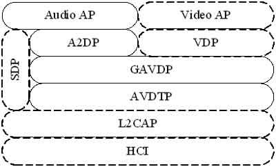 高级音频分发框架(A2DP)依赖于通用音频视频分发框架(GAVDP),GAVDP定义了设置音频和视频流传输的步骤,而A2DP则进一步定义了音频流传输的参数和步骤细节。