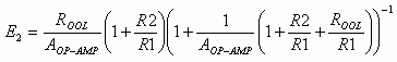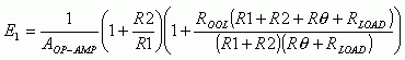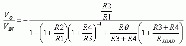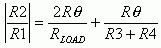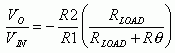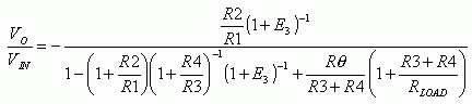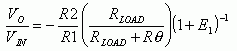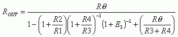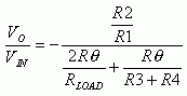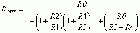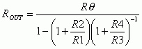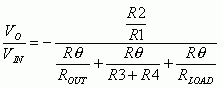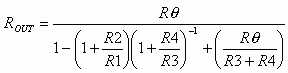 输出阻抗有源组合值得庆幸的是可以找到一种方法设置输出阻抗,降低增益损失。谨慎利用电压差分放大器的正反馈,提高阻值较小的输出电流检测电阻,使其达到所需的最终值。![]() 图2. 单路运算放大器有源匹配 注意,图2中,负载电流IFORWARD由VO/RLOAD决定。 当VIN等于零时,组合输出阻抗ROUT由VO/IREVERSE决定。 图2所示的单路运算放大器同时具有正反馈和负反馈环路,由它们设置增益和输出阻抗。RΘ与负载串联,用于采样负载电流。R3和R4正反馈用于放大RΘ的等效值。为保持电路稳定,必须以负反馈为主,这限制了增益。 包含运算放大器开环输出阻抗,在环路增益开始衰减的高频端,使ROOL能够接近RΘ。 图2所示电压增益由下式给出: ![]() 误差项由下式给出: ![]() 图2输出阻抗由下式给出: ![]() 给出运算放大器有限开环增益导致的误差。 注意,图2电路输入与输出信号反相。 假设理想运算放大器开环增益为无穷大,输出阻抗为: ![]() 一般而言,[RΘ / [R3 + R4]]项 << [1 + R2 / R1][1 + R4 / R3]-1,因此,可以忽略。 ![]() 假设理想运算放大器开环增益为无穷大,电压增益为: ![]() 将输出阻抗重新带入增益公式: ![]() 通常,在反相匹配应用中,RLOAD = ROUT。因此: ![]() 图2的优点: