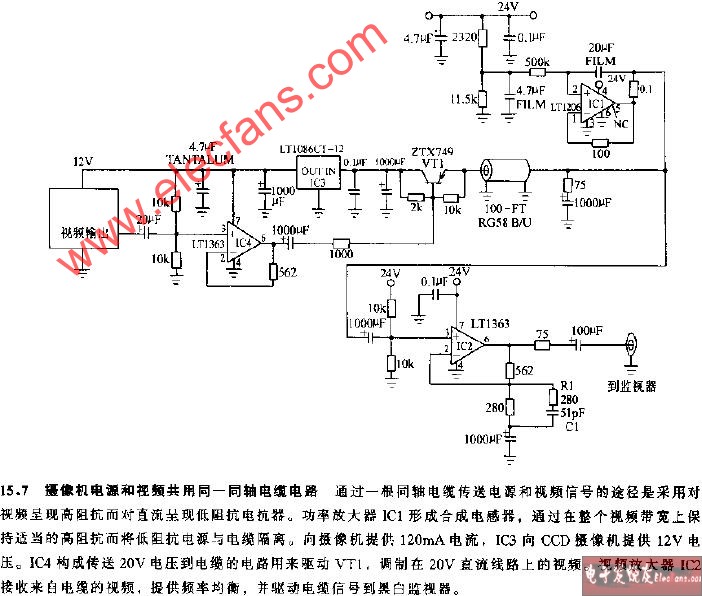 摄像机电源和视频共用同-同轴电缆电路