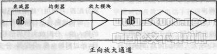 正向放大通道由前置衰减器和均衡器、一级放大模块、级间衰减器和均衡器、二级放大模块组成。