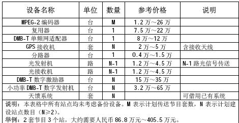 表5 DMB-T 单频网主要设备清单