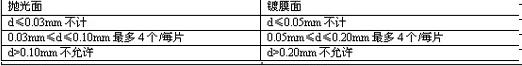膜层点状缺陷:SIO2阻挡层和ITO导电层的点状缺陷包括针孔、空洞、颗粒等,点状缺陷的直径定义为:d=(缺陷长+缺陷宽)/2。见表1-5。表1-5