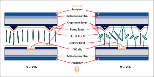 MVA技术因液晶的特殊排列模式不但提高面板视角并解决大部份灰阶反转的问题。