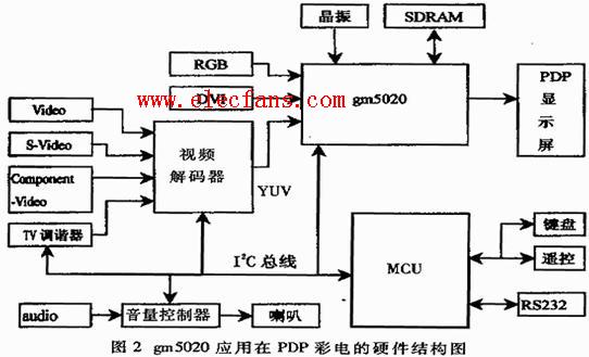 图2是gm5020应用在PDP平板显示系统中的硬件电路结构图。