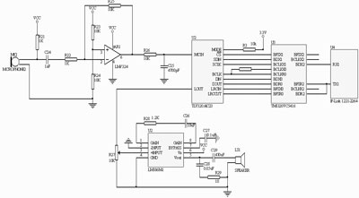 功率放大器选用LM386。它是一种音频集成功放,具有功耗低、电压增益可调整、电源电压范围大、外部元件少和总谐波失真小等优点,在1脚和8脚之间增加一只外接电阻和电容,便可将电压增益调为20~200之间的任意值。