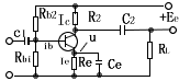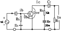 | 所谓图解法,就是利用晶体管输入和输出的特性曲线,通过作图来分析放大器性能的方法,图解法能直观和全面地表明三极管放大的工作过程,并能计算放大器的某些性能指标,现举例子来说明图解法的图解过程, 例:已知下图电路中的参数及输入电压Ui=15sinωt(毫伏)要求用图解法确定电路的静态工作点参数Ibq、Icq、Iceq,并计算电压和电流的放大倍数Ku、Kio。 |