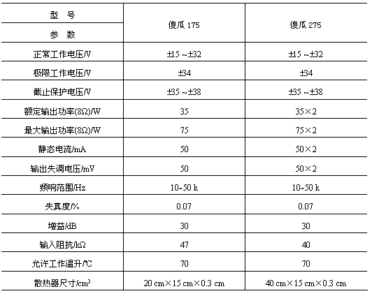 “傻瓜”功放有单路输出(傻瓜175)、双路输出(傻瓜275)和不同功率输出等多种规格。傻瓜功放主要技术参数见附表1-18所列。