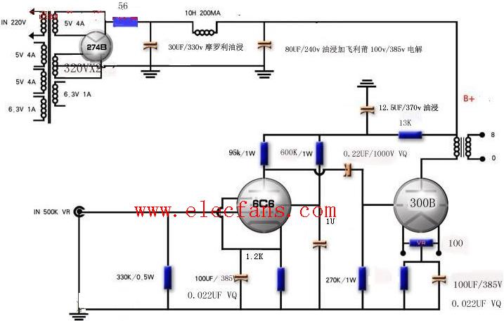 电子管6C6推300BSE胆机电路图