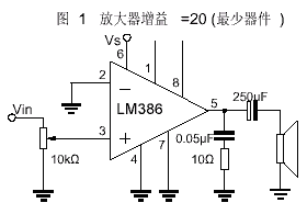 LM386是美国国家半导体公司生产的音频功率放大 器,主要应用于低电压消费类产品。为使外围元件最少,电压增益内置为20。但在1脚和8脚之间增加一只外接电阻和电容,便可将电压增益调为任意值,直至 200。输入端以地位参考,同时输出端被自动偏置到电源电压的一半,在6V电源电压下,它的静态功耗仅为24mW,使得LM386特别适用于电池供电的场 合。 LM386的封装形式有塑封8引线双列直插式和贴片式。 |