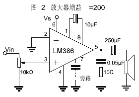 静态功耗低,约为4mA,可用于电池供电。 工作电压范围宽,4-12V or 5-18V。 外围元件少。 电压增益可调,20-200。 低失真度。 |