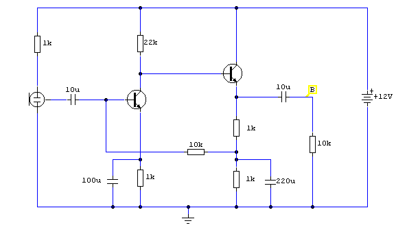 Both transistors are low noise types. In the original circuit, I used BC650C which is an ultra low noise device. These transistors are now hard to find but BC109C are a good replacement. The circuit is very device tolerant and will set its quiescent point at roughly half the supply voltage at the emitter of the last transistor.