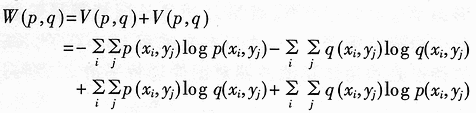 相对熵越小,这两类概率分布的差别就越大,当两类概率分别完全相同时,相对熵达最大值(等于零)。因此可以定义判别熵W(p,q)来表征两类分布p(xi,yj)和q(xi,yi)的差别大小。
