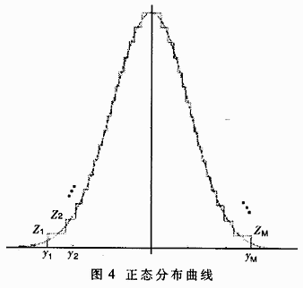 将正态分布函数的自变量y进行合理的离散化,得到一系列函数值,构成一个数列。再将此数列中的任一个数yi映射到数轴x上的某个小区间段[xi0,xi1],其中‖xi1-xi0‖=yi。取遍数列中所有的数值,得到一系列的小区间。将所有的小区间依次连接起来,中点置于数轴的零点,则构成变量x的取值区间[-x,x]。将数轴x上的各个小区间与y序列建立映射关系,则可以证明,如果采样间隔足够小,那么x域中的随机分布将对应于y域中的高斯分布。