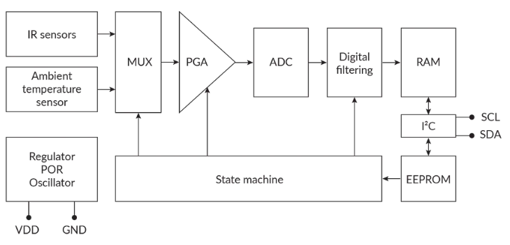 MLX90632红外温度传感器 IC 的框图 来源:Melexis