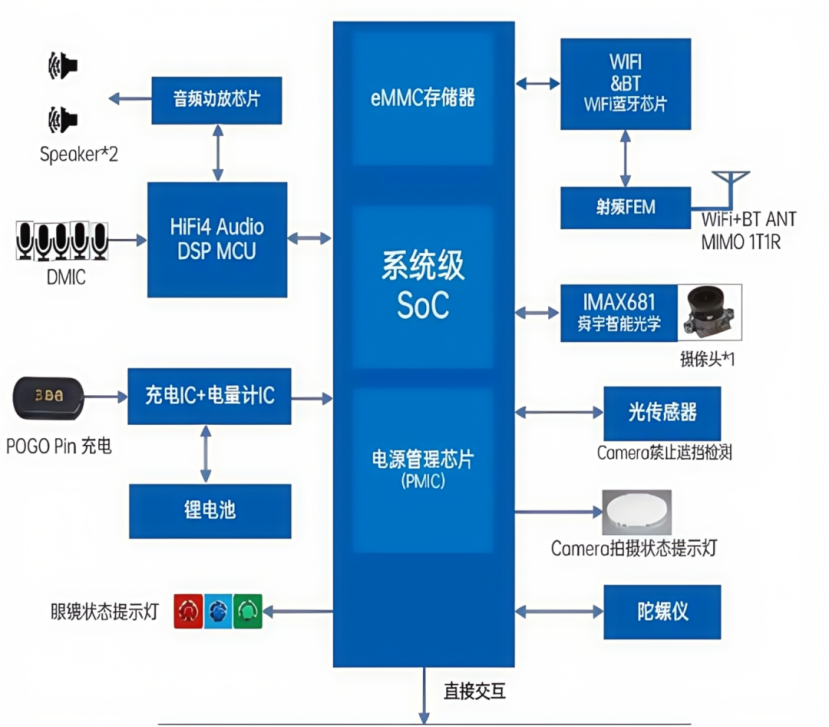 其中,AI智能眼镜的核心模块是芯片