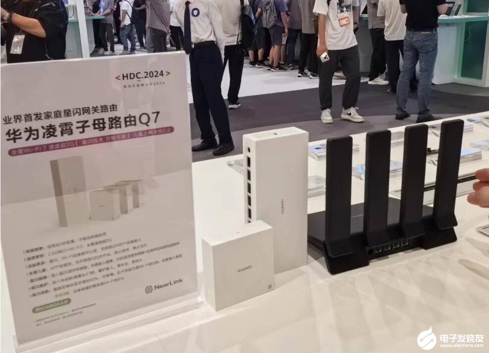 针对多个房间,多设备的接入场景,华为凌霄子母路由器Q7闪亮登场,这是业界首发的家庭星闪网关路由,产品搭载2.5G网口+Wi-Fi7,全屋Wi-Fi7速度超过2G,星闪、Wi-Fi设备都可以连,海思展台人员表示,这台路由器可以支持超过400个设备接入,预计2024年第四季度上市。