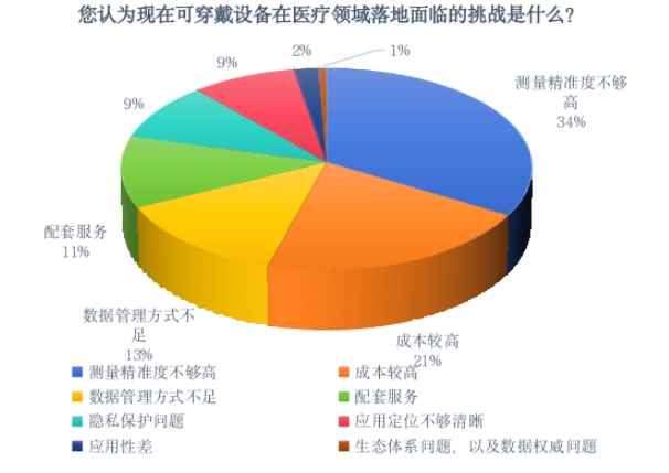 其中,医疗和工业领域在落地上还面临着挑战。经过电子发烧友网的调研,超过三成的工程师认为测量精准度不高是可穿戴设备在医疗领域落地的最大挑战,其次是成本问题。