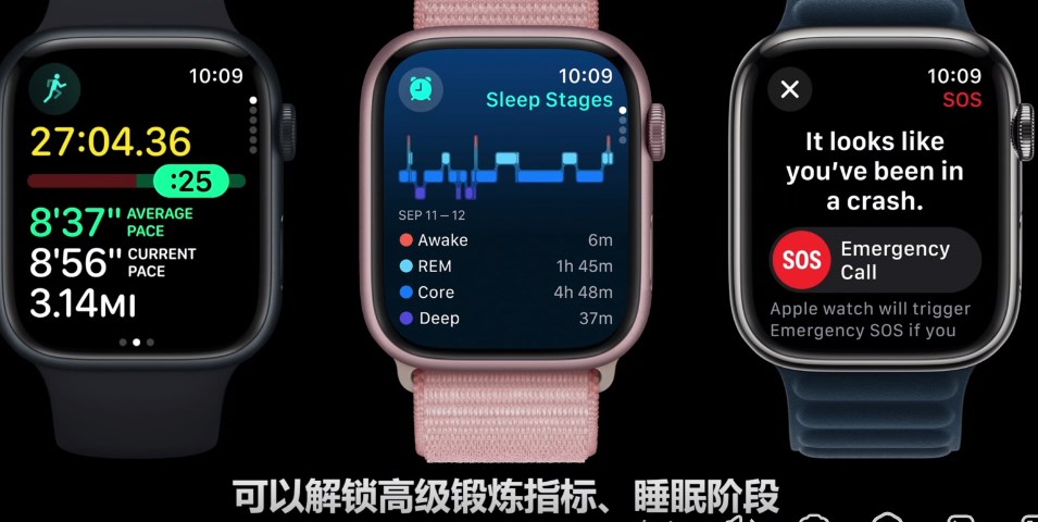 苹果最先宣布推出的是性能提升的新款Apple Watch。新款Apple Watch 搭载S9芯片更丝滑,而且处理机器学习任务的速度最高可以达2倍。