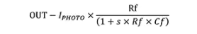 当光线照到光电二极管时,电路会将 IPHOTO 转换为输出电压,其转换函数如等式 1 所示。