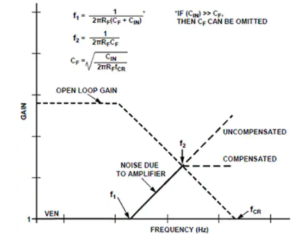 需要注意的是,从等式 1 可以看出,信号频率极点(增益随频率的升高而降低的频率)等于 2 x p x Rf x Cf。