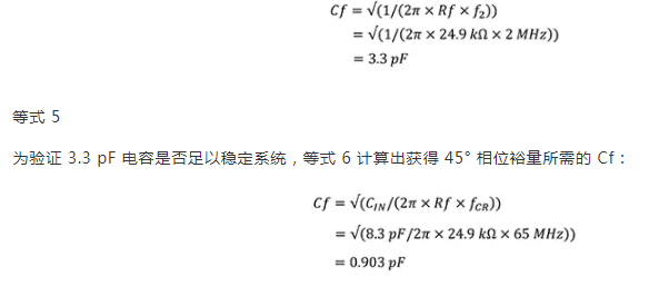 等式 5 使用 f2 的转折频率 (2 MHz) 来确定 Cf 的值:
