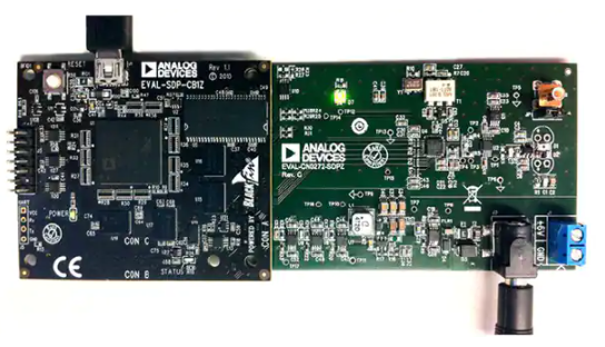 图 7:与 EVAL-SDP-CB1Z SDP-B 板连接的 EVAL-CN0272-SDPZ 评估板。(图片来源: Analog Devices)