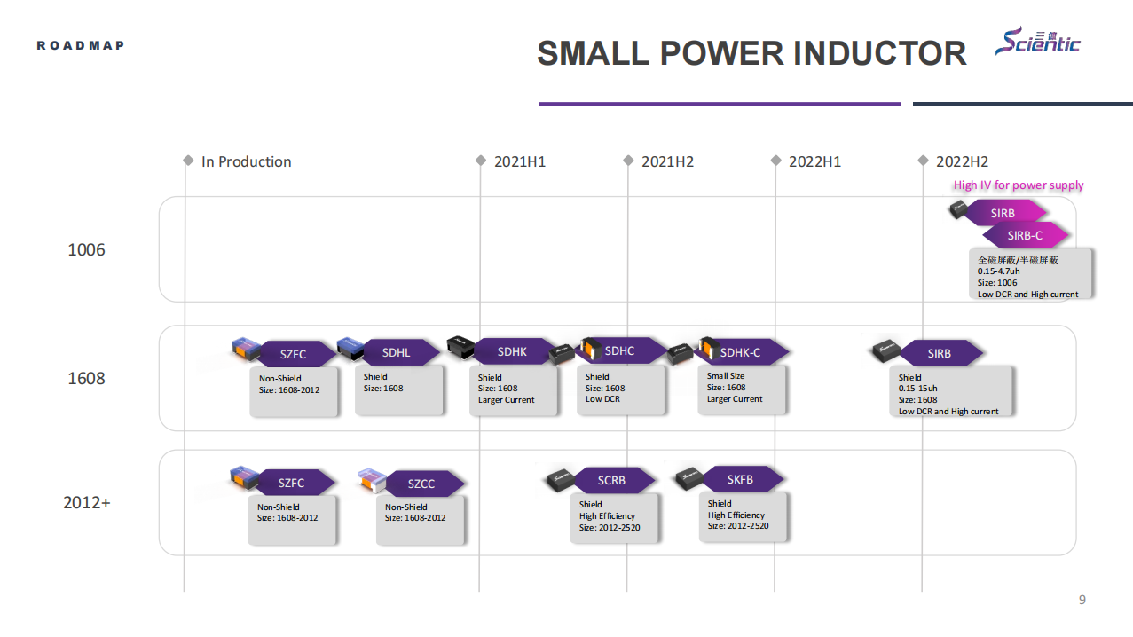 上述发展趋势,让电感厂商不断突破电感的尺寸。此前,顺络曾发布小尺寸一体成型功率电感MWTC系列,该系列属于模压片式功率电感,主打小尺寸(目前量产产品尺寸包括2520,2016,2012,1412,最小尺寸为1412065),低损耗,采用闭合磁路设计。