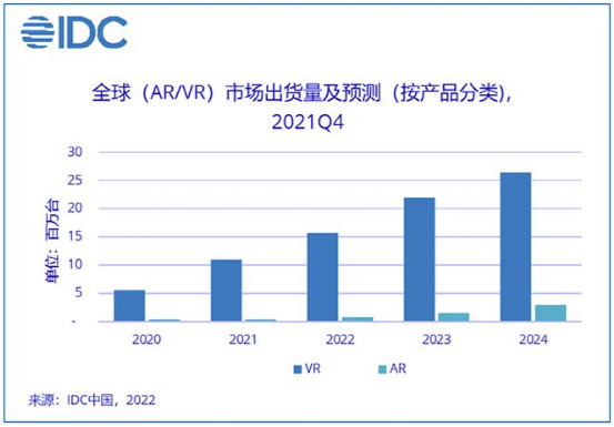 回顾2021年,行业巨头涌入、资本加入让VR产业快速发展,品牌厂商也推出了不同的入门级新产品,并且朝着高性能产品研发。根据IDC的最新报告,2021年全年全球AR /VR头显出货量同比增长92.1%,达到1123万台;全球AR /VR产业总投资规模接近146.77亿美元,IDC预计2026年将增至74.3亿美元。