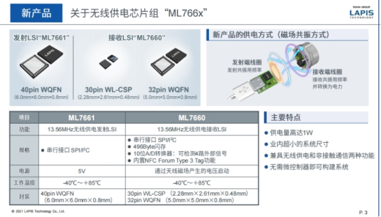 什么是无线供电?说起无线供电,可能很多人会首先想到给智能手机以及平板电脑充电的这一类Qi供电。对于小型的可穿戴设备,Qi规格是不适用的。针对小型化,ROHM集团旗下的蓝碧石科技株式会社(以下简称“蓝碧石科技”)此前开发出第一代产品---无线供电芯片组“ML763x”。今天笔者想介绍的并不是第一代“ML763x”,主要介绍的是第二代新产品——功率高达1W的无线供电芯片组“ML766x”。