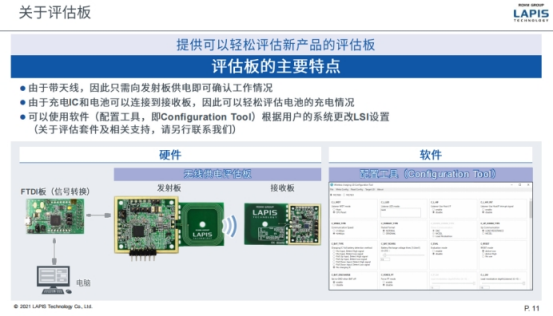 评估板包括两个部分,一个是发射板,另外一个是接收板,评估板上面还自带了一个天线,当然也可以根据自己的需求把天线截断,用自己的天线进行评价。评估板带了天线以后,只需要向发射板供电即可以确认工作情况。另外,评估板还配备了配置工具,使用这个配置工具客户在评估过程中可以更改LSI的一些设置。