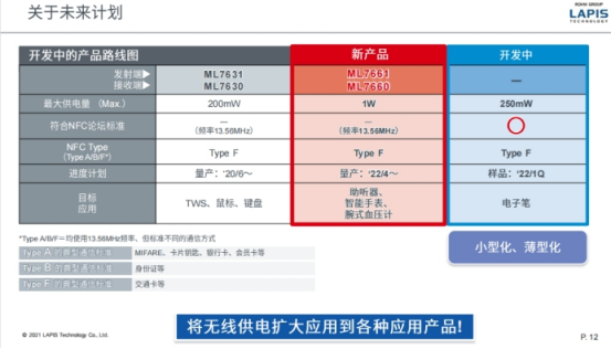 小结:可以看到罗姆推出了两代产品,第一代ML7631/ML7630,第二代产品是ML7661/ML7660。供电量分别是200mW和1W,但是这两个产品的充电规格还没有符合“NFC论坛”的充电标准,下一代产品准备做一个符合“NFC论坛”标准的充电LSI。一旦产品符合“NFC论坛”标准,就可以跟其他家符合NFC充电标准的产品进行互充,这样可以大大提高在各种产品上的充电应用。