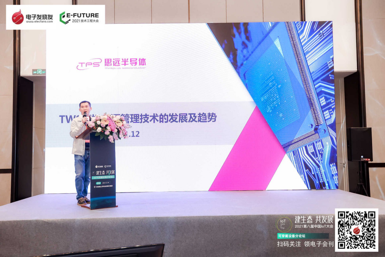 思远半导体市场总监黄林在IoT可穿戴设备分论坛上就《TWS耳机电源管理技术的发展与趋势》主题进行了分享。思远半导体是一家专注于电池应用、电源管理系统芯片设计的企业,目前主要为消费电子、工业及汽车电子等行业提供领先的电池管理系统级芯片解决方案。