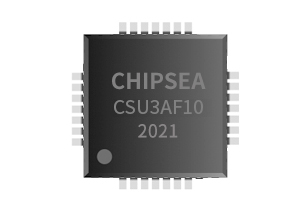 CSU3AF10是一款通用型的快充协议控制芯片,片上集成2路独立的Type-c、1路PD和4路DP/DM快充协议接口,可兼容市面上的多种快充协议。同时CSU3AF10采用的是MCU的设计架构,内置了一颗8位,主频峰值最高可达24MHz的MCU,以及32K×16 位程序存储器 FLASH和2KB的数据存储器,可以通过软件撰写提供高便利性以及高调适性,来符合变化快速的快充市场。MCU 在工作状态下,工作电压为3.3V,工作电流为3.5mA,在休眠模式下静态电流小于10μA,即使是整个Type-c模块的休眠功耗也仅有50μA,具有低功耗的特性。