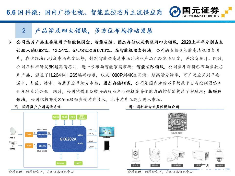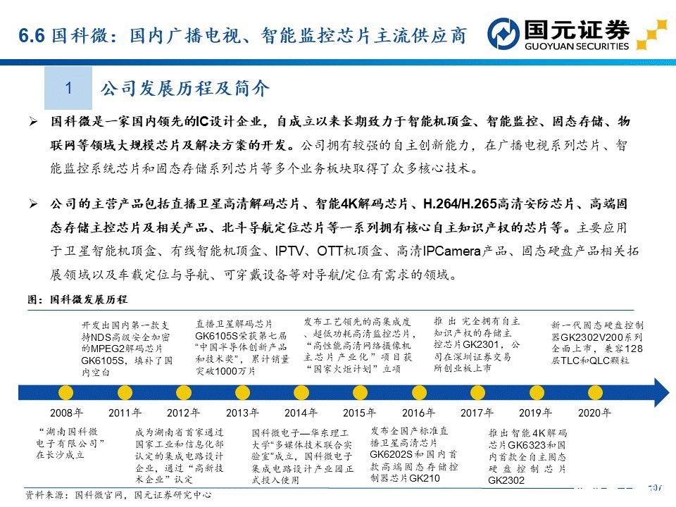 国科微:国内领先的IC设计企业,产品覆盖广播电视、智能监控、固态存储以及物联网等领域,是国内广播电视系列芯片和智能监控系列芯片的主流供应商之一。