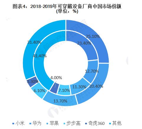 注:内环为2018年市场份额,外环为2019年市场份额。