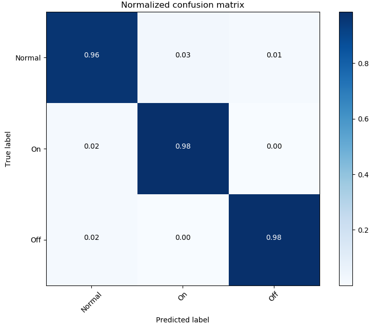 通过采集不同动作的数据,进而预处理,做特征提取和融合,数据增强,模型训练,模型剪枝,并测试验证之后,把模型部署在BMI160内置的MCU里。这样在实际工况下实时采集到的数据处理过后利用已经训练好的决策树分类器进行分类识别,进行实时的动作识别,我们在测试集和实际测试中均达到了98%的准确率。