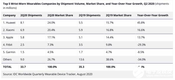 按照华为消费者业务CEO余承东在发布会上所援引的IDC2020第二季度报告数据,华为的腕上穿戴式设备在市场份额上排名全球第一。