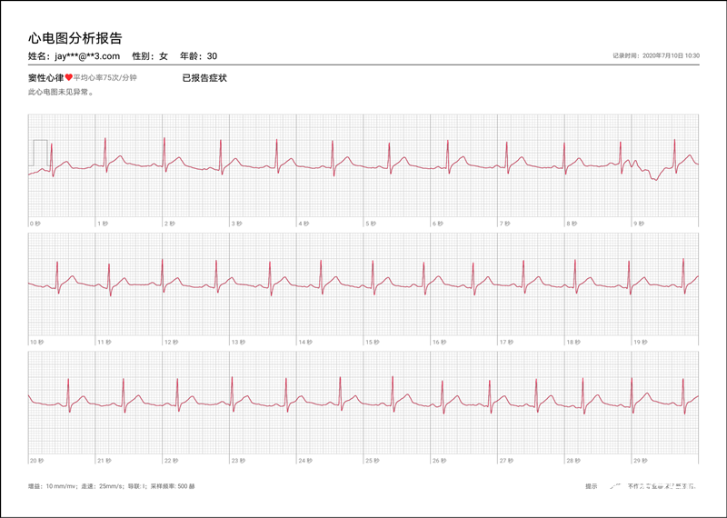 心电图详细分析报告