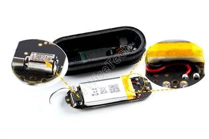主板通过两颗十字螺丝与后盖固定。而电池通过焊点和主板连接,转子马达也是直接焊接在主板上。