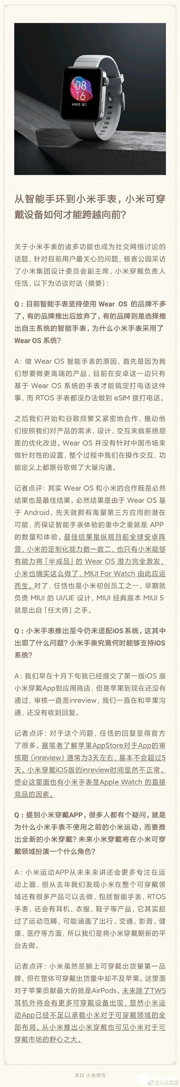 对此,小米穿戴软件负责人@小米任恬 近期接受了《极客公园》的采访时进行了解答。