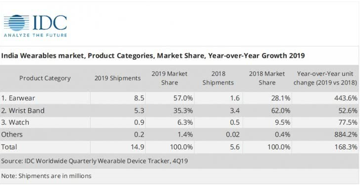 总体而言,2019年最后一个季度标志着印度一般可穿戴设备市场出货量连续第七个季度实现两位数增长。